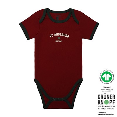 Das FCA-Kinder Shirt Teddy Schwarz zeigt auf der Brust einen süßen, detailreichen Teddybären, der als waschechter FCA-Fan gekleidet ist. Der Bär trägt eine Cap in den Vereinsfarben, eine Hose, Sportschuhe und hält einen FCA-Schal in der Hand, auf dem groß "FC AUGSBURG" geschrieben steht.